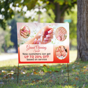 * Keep in mind that yard signs designs should be kept simple and the text visible from a distance so passersby can grasp the message in seconds.